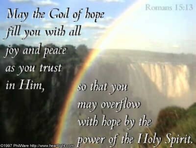 Now may the God of hope fill you with all joy and peace in believing, that you may abound in hope by the power of the Holy Spirit. (Romans 15:13 NKJV)